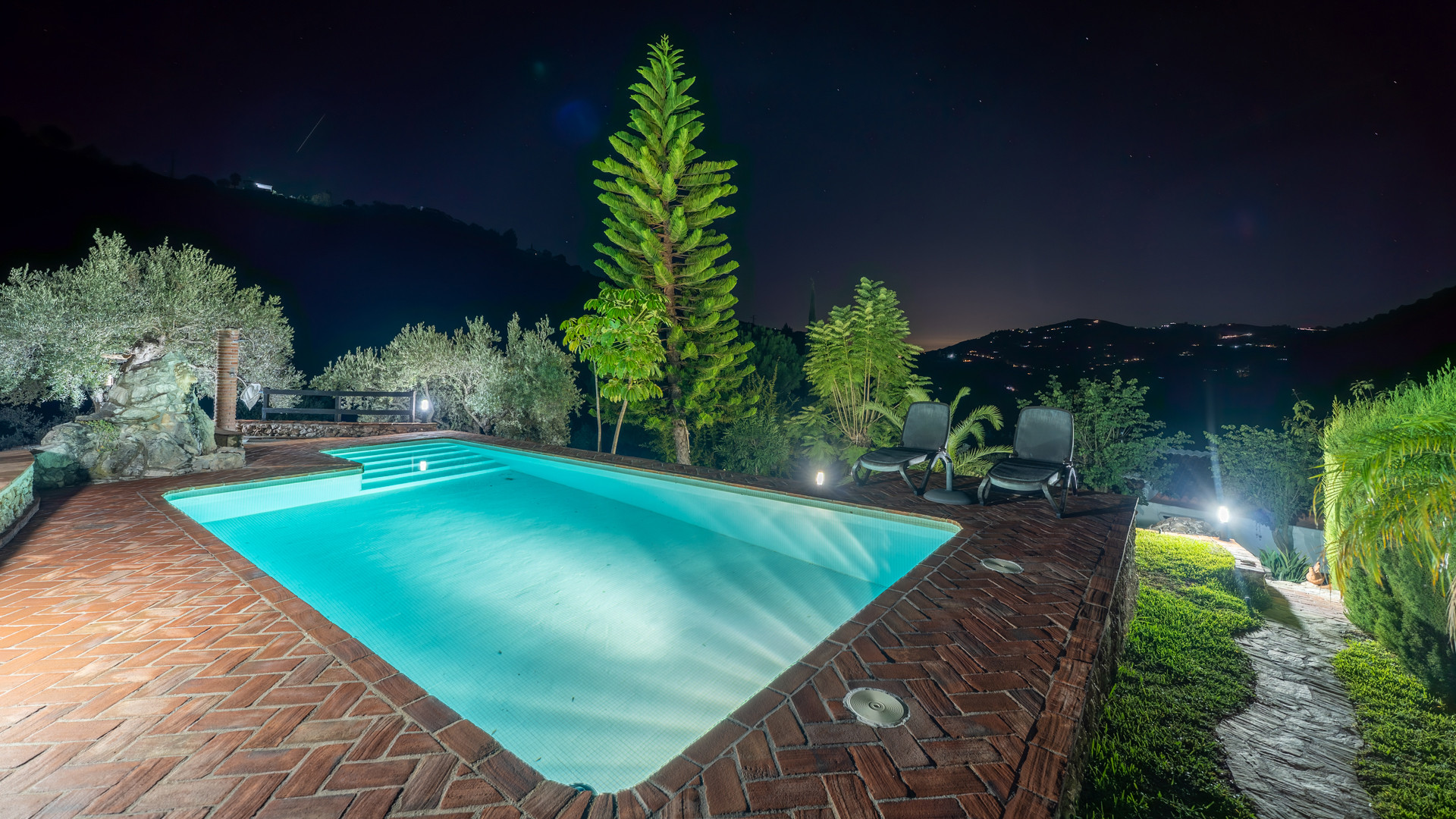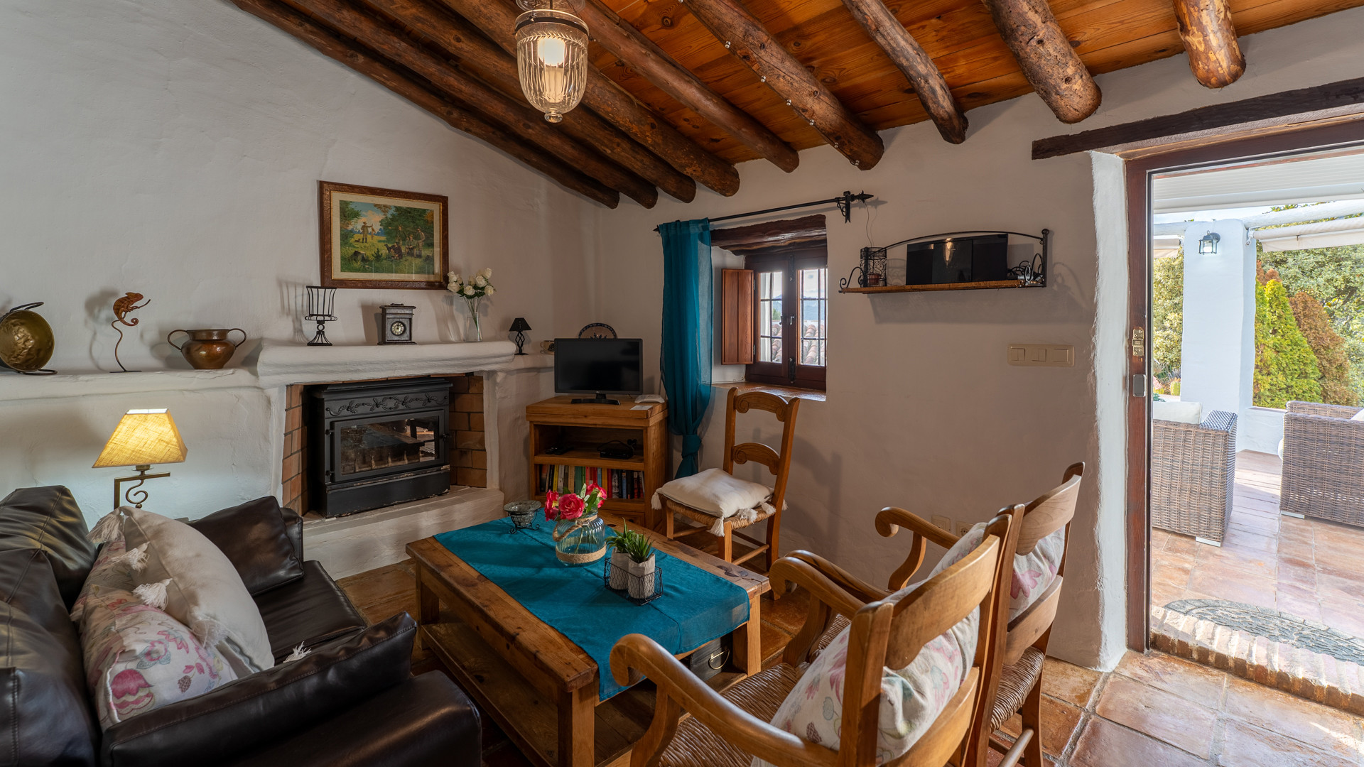 Rustikal, mit viel Privatsphäre und ländlich. Das ist die Essenz dieses herrlichen Domizils. Nach einer schönen Autofahrt durch die Berge entdecken Sie dieses versteckte Tal, 10 Autominuten von Frigiliana entfernt. Der Weg zum Anwesen macht ein paar scharfe Kurven, aber er ist vollständig befestigt und nicht schwierig zu befahren. Das "cortijo" liegt inmitten eines großen Gartens, den verschiedene Sitzecken mit Blumen und Bäumen zieren. Es gibt eine attraktive Grillmöglichkeit sowie eine schattige Veranda mit entsprechendem Mobiliar. Das eigene Schwimmbecken von 7 x 4 Metern (mit Liegestühlen) liegt etwas höher und bietet eine Panoramasicht über das Tal und über den 1 Kilometer weiter entfernt liegenden Weiler El Acebuchal, ein kleines Dorf mit interessanter Geschichte: nachdem seine Bewohner 1949 durch das Franco-Regime vertrieben worden waren, blieb El Acebuchal lange Zeit verlassen und verfiel. Bis 1998 ein Nachfahre der ursprünglichen Bewohner dort ein Haus erwarb und auch andere davon überzeugte, die 32 Häuser, das Rathaus, die Kapelle, die Bars und die Straßen des Dorfes wieder aufzubauen. Um das Dörfchen wieder in altem Glanz erstrahlen zu lassen, wurde es sehr sorgfältig restauriert, mit viel Sinn für Details. Es gibt hier zwar keinen Laden, jedoch sehr wohl ein Bar-Restaurant, in dem regionale Spezialitäten wie Wildschwein oder Ziegengerichte serviert werden. In Frigiliana, das als sog. "Weißes Dorf" einen Besuch mehr als wert ist, finden Sie eine große Auswahl an Läden, Tapas-Bars und Restaurants. Auch ein Besuch von Nerja (9 Kilometer) lohnt sich: schöne Strände und die erfrischenden Fluten des Mittelmeeres erwarten Sie hier.