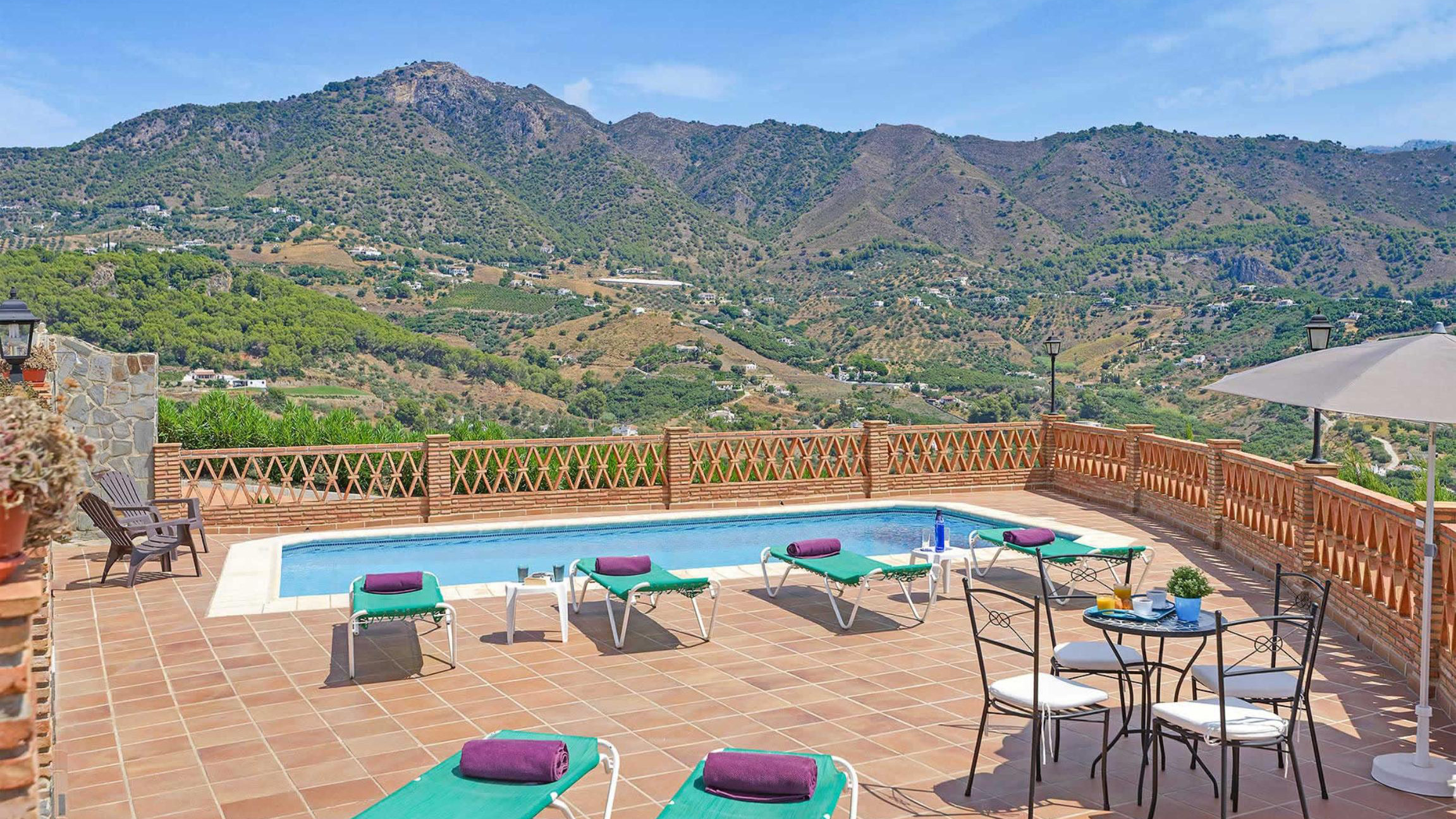 Die Anlage hat einen großen Swimmingpool (4x7,5 m lang und 1x1,5 m tief) mit Rasenfläche und einer hübschen Sonnenterrasse — zur Entspannung einladende Sonnenliegen sind vorhanden. Von hier aus gelangt man auch verhältnismäßig schnell zu den eindrucksvollen andalusischen Städten arabischen Ursprungs wie Granada, Sevilla und Cordoba. Und zu den Stränden von Nerja sind es nur 10 Minuten Autofahrt.