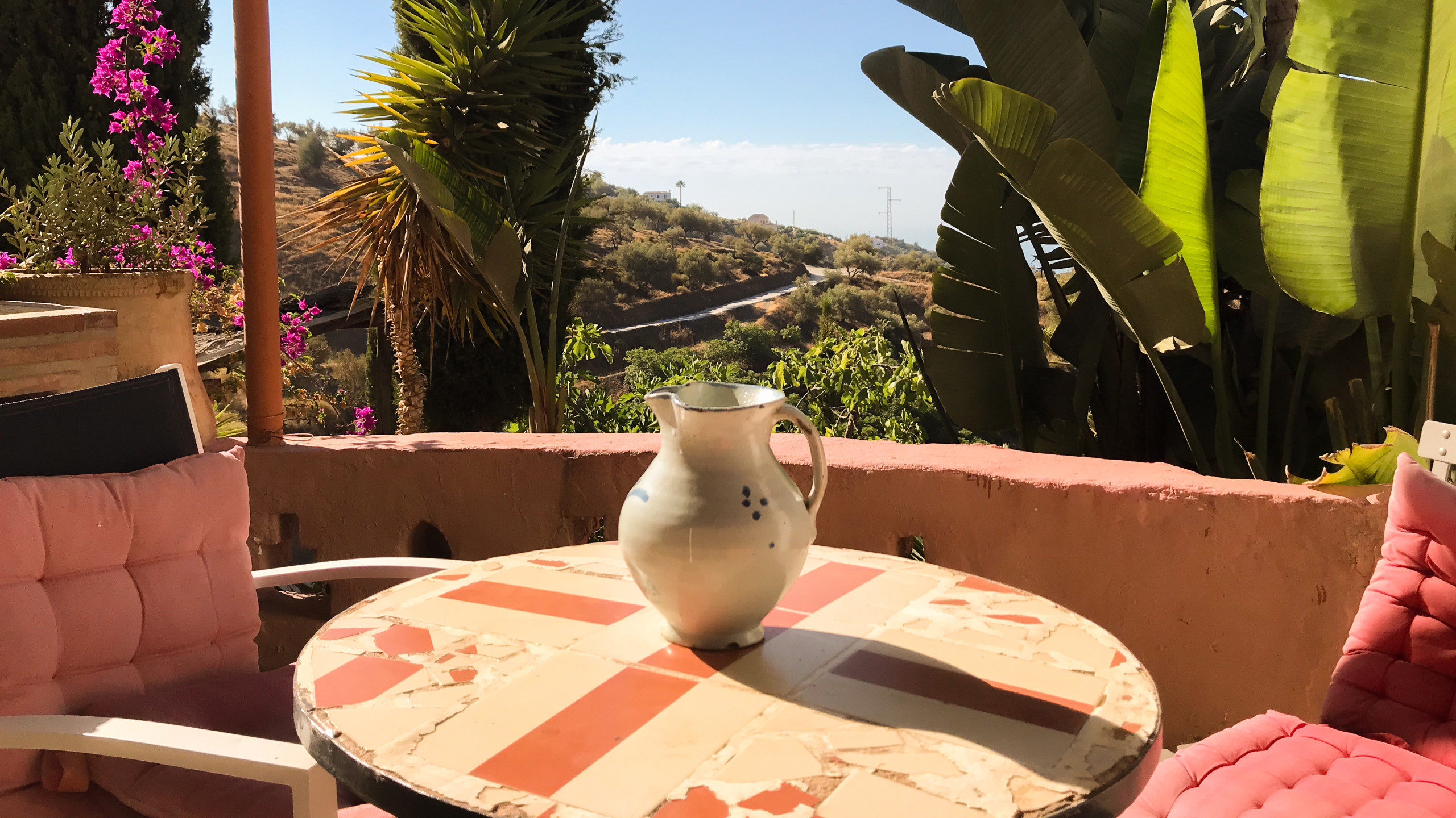 Dieses neu gebaute Haus liegt an einem Hügel gegenüber des weißen Dorfes Frigiliana und ist von Avocado-Bäumen und einer erholsamen Ruhe umgeben. Die Sonnenterrasse mit gemauertem Grill und einem mit römischer Treppe versehenen Swimmingpool (7m x 4m) liegt oberhalb des Hauses und hat viel Platz für das Sonnenbad, bei dem Sie den wundervollen Blick auf die Landschaft und das Dorf genießen können. Sonnenliegen sind vorhanden. Neben dem Wohnzimmer befindet sich eine weitere Terrasse für Schattensuchende. Sie hat eine Essecke und ebenfalls einen herrlichen Ausblick. Mit dem Auto erreicht man das Haus über einen betonierten Weg, der von der Frigiliana – Torox-Straße abzweigt und ein paar steile Stellen aufweist. Obwohl er nicht sehr viele Kurven besitzt, empfehlen wir ein Auto, das zumindest einen 1.4-Motor hat.