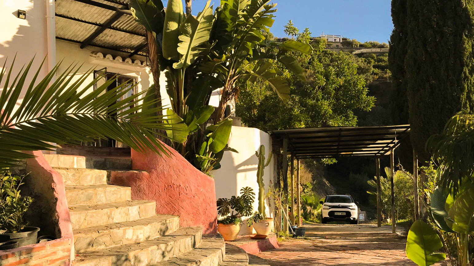 Dieses charmante Bauernhaus liegt nur ein paar Gehminuten von Frigiliana entfernt, wo Sie eine Menge von Restaurants, Tapa-Bars und von Familien geführte Läden finden. Trotzdem liegt es sehr ruhig, inmitten von Oliven- und Avocado-Bäumen und hat eine vollkommene Privatsphäre. Dieser cortijo hat seinen andalusischen Baustil erhalten: dicke Außenmauern, Holzbalkendecken und mit Ocker- und himmelblauer Farbe dekoriert — moderner Komfort … mit traditionellem ländlichen Charme.