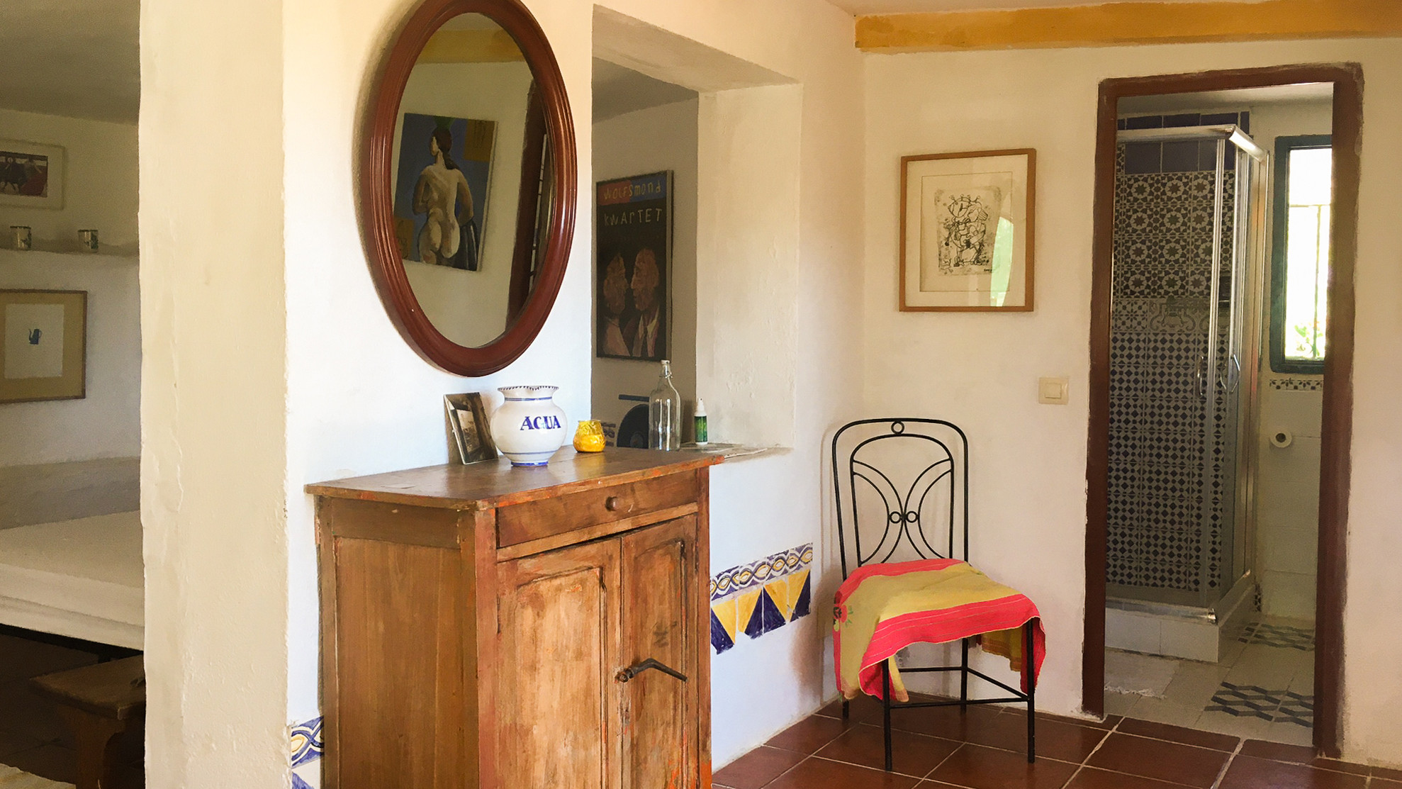 Eines der Schlafzimmer und ein Badezimmer befinden sich in einem separaten Apartment im unteren Stockwerk unter der großen Terrasse.