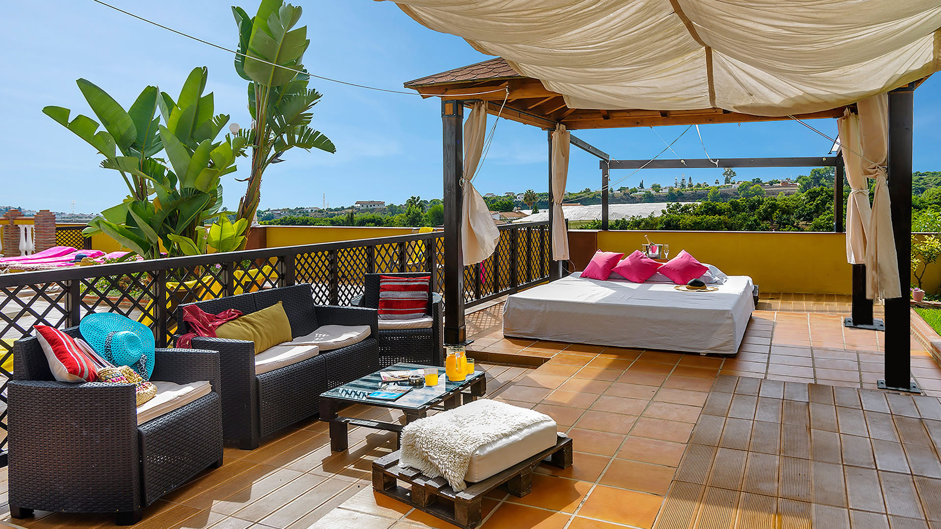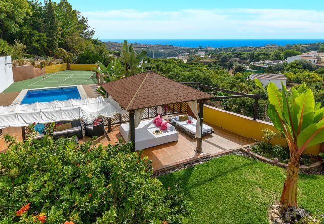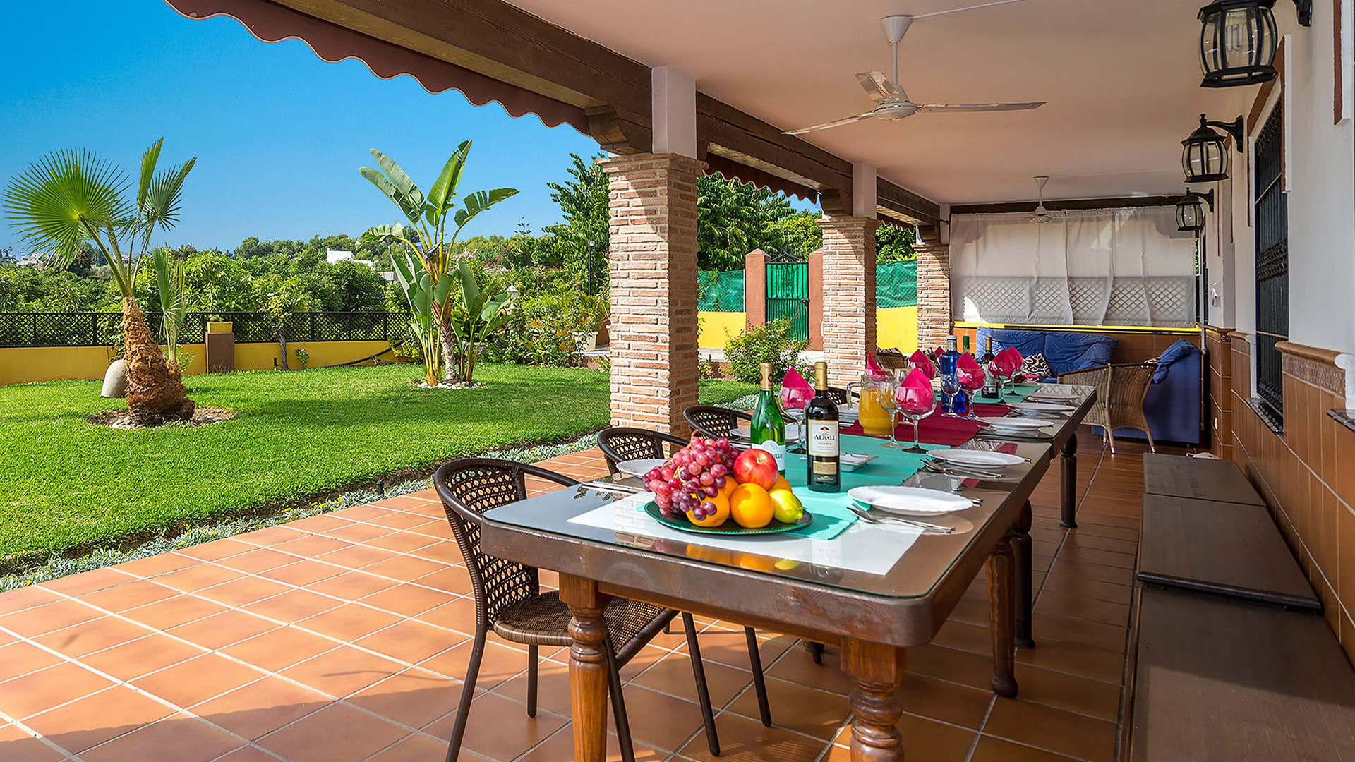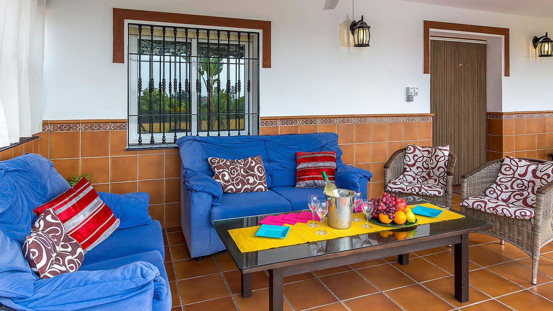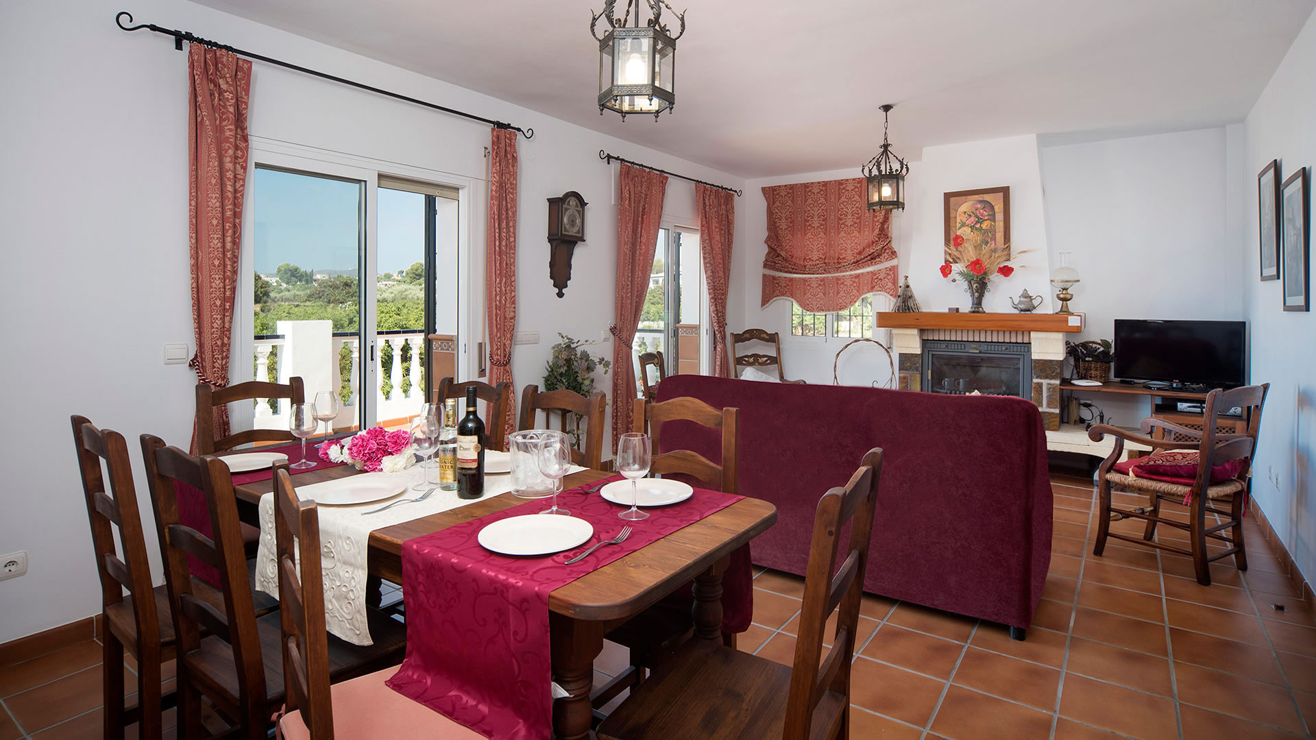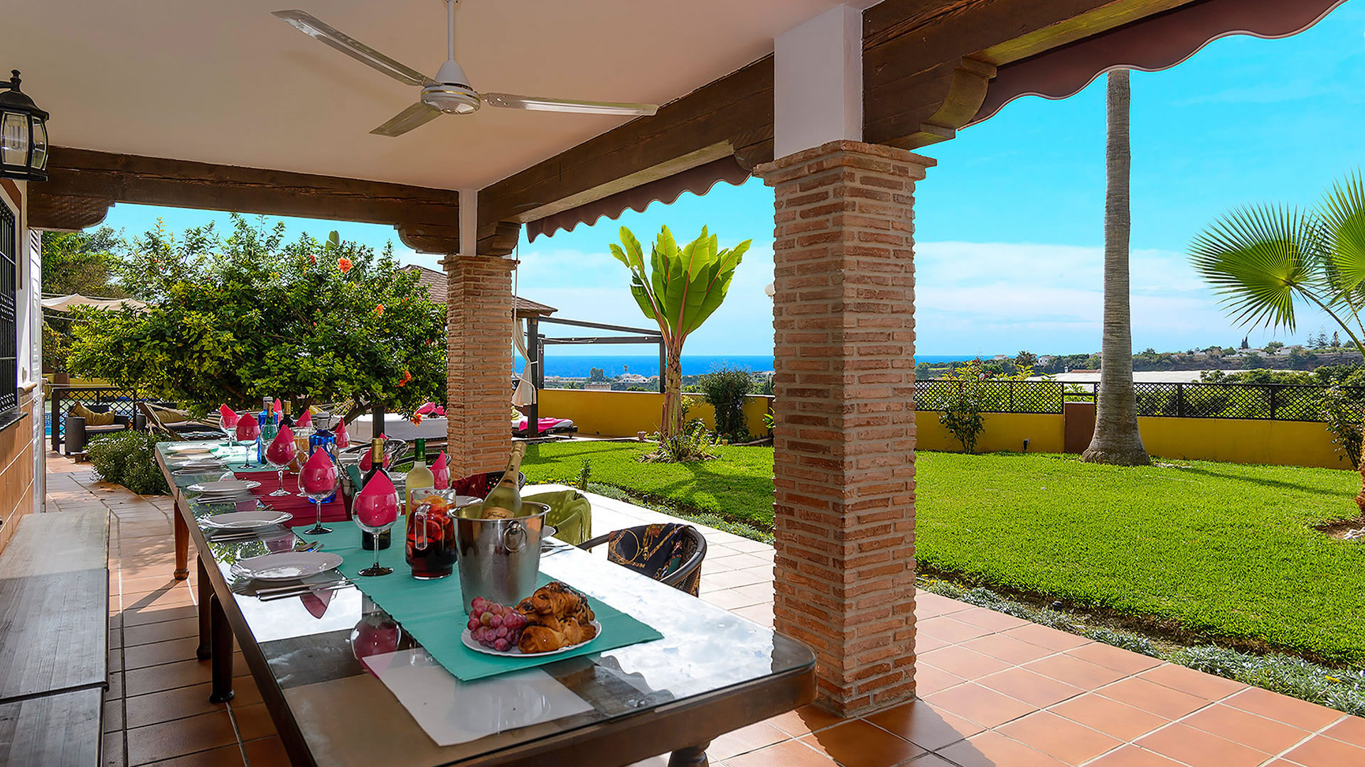 Die ländliche Lage dieses Anwesens, 2,5 km nordöstlich von Nerja, garantiert Ihnen Ruhe und Stille! Dennoch liegen die Supermärkte, Restaurants, Tapas-Bars und auch die Ausgeh-Möglichkeiten Nerjas nur einen Steinwurf entfernt und sind mit dem Auto schnell zu erreichen. Die umschlossenen Gärten am Haus sind Teil eines 2.600m2 großen privaten Landgutes. Sie beherbergen eine große Rasenfläche und ein eigenes Schwimmbecken von 9 x 5 Metern. Die schattige Veranda ist der ideale Ort für das Speisen unter freiem Himmel, oder um herrlich Siësta zu halten! Auch ein Grill ist vorhanden. Vom Ferienhaus und seinen prächtigen Gärten aus bietet sich Ihnen eine fantastische Aussicht über Nerja und die Umgebung bis ans Mittelmeer.