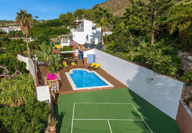 Wenn Sie auf der Suche sind nach einem geräumigen Domizil mit großer Rasenfläche auf der die Kinder spielen können und einem etwas abseits gelegenen Schwimmbecken, dann ist dieses Ferienhaus eine gute Wahl. Es wurde von den Eigentümern äußerst geschmackvoll eingerichtet und verfügt über zwei Wohn-/Esszimmer und zwei vollständig ausgestattete Küchen. Das Haus liegt 5 Autominuten von der Stadt Nerja und ihren Stränden entfernt.