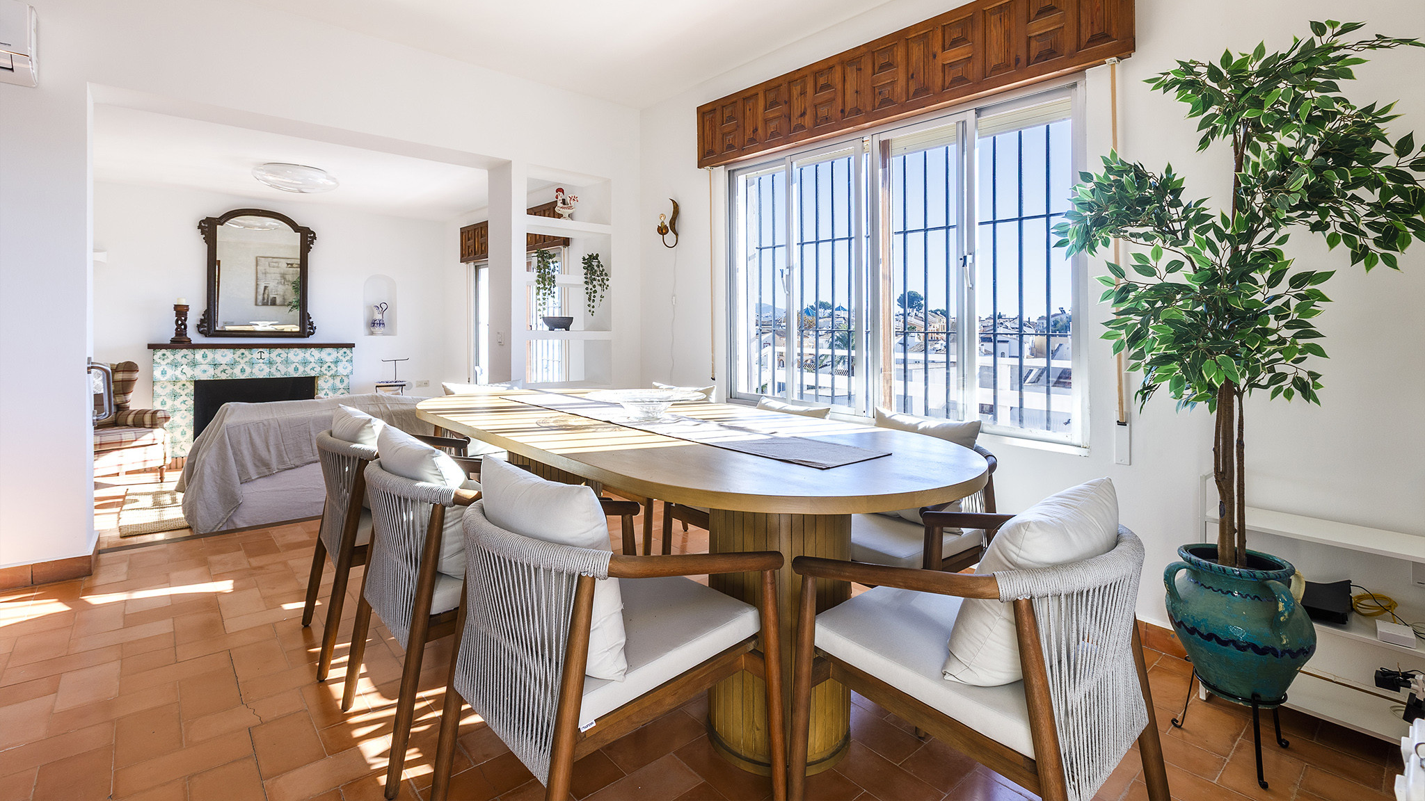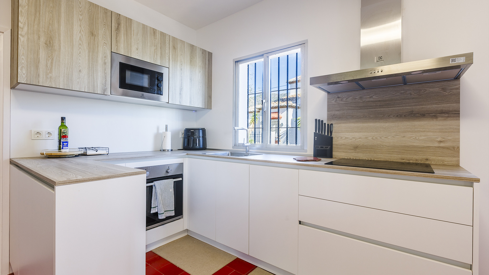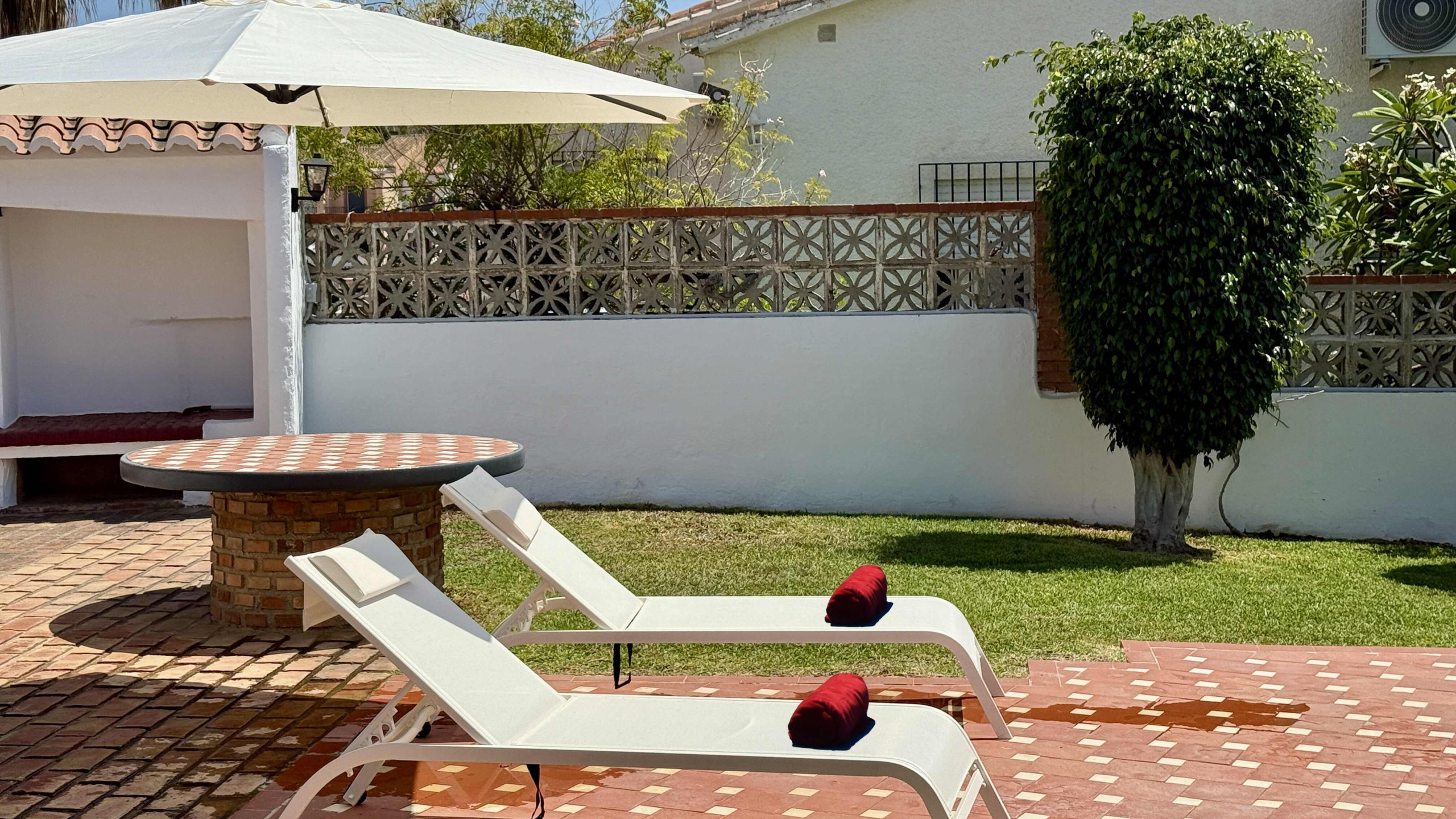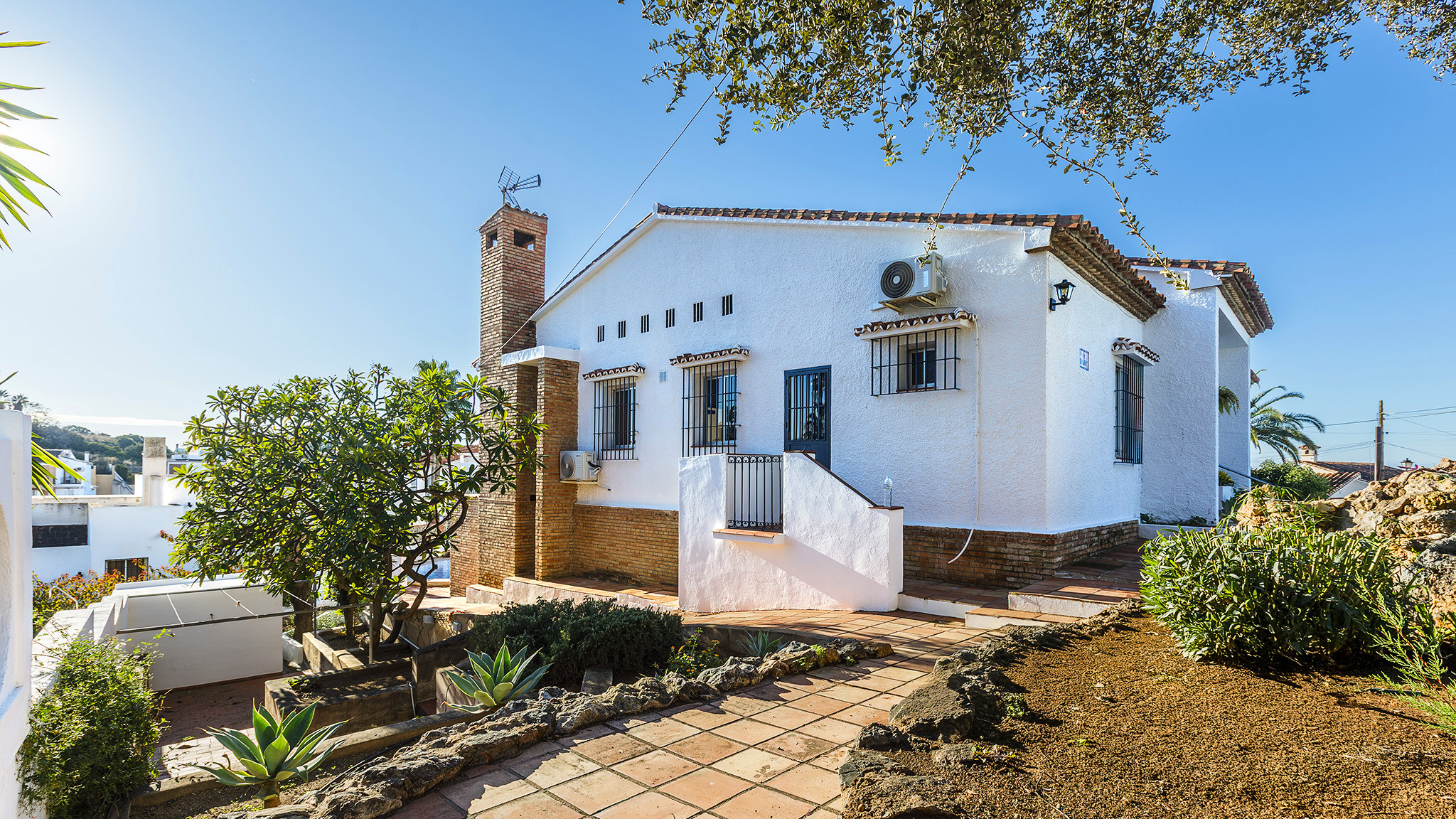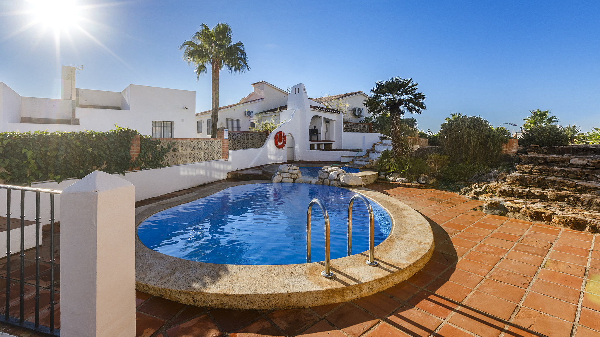 Die Villa befindet sich in der Straße Calle Jara, in einer ruhigen Wohngegend, 1,7 km nördlich von Nerjas berühmtem Strand Playa Burriana und der Altstadt, wo Sie ein breitgefächertes Angebot an Tapa-Bars und Restaurants sowie ein munteres Nachtleben finden. Wer das andalusische Kulturerbe kennenlernen möchte, hat die Stadt Granada und deren Alhambra-Palast auch in der Nähe und sollte auf ihren Besuch nicht verzichten. Noch näher liegen die eindrucksvollen Höhlen von Nerja oder die hübschen weißen Dörfer wie Frigiliana oder Competa. Sollten Sie es vorziehen zuhause zu bleiben, dann werden Sie sich an dem unwiderstehlichen Swimmingpool (8x4 m) erfreuen sowie an dem hübschen Garten mit Rasenfläche. Es stehen Sonnenliegen zur Verfügung und eine Grillecke für Abendessen im Freien. Der Esstisch befindet sich an einem schattigen Platz. Hinzu kommt eine weitere Sitzecke mit schönen Sitzgelegenheiten aus Naturstein und der Hauswand als Rückenlehne – ein wundervoller Platz für eine Cocktail- oder eine Sangria-Party! Auf der Straße vor dem Haus hat man genügend Parkfläche für das Auto.