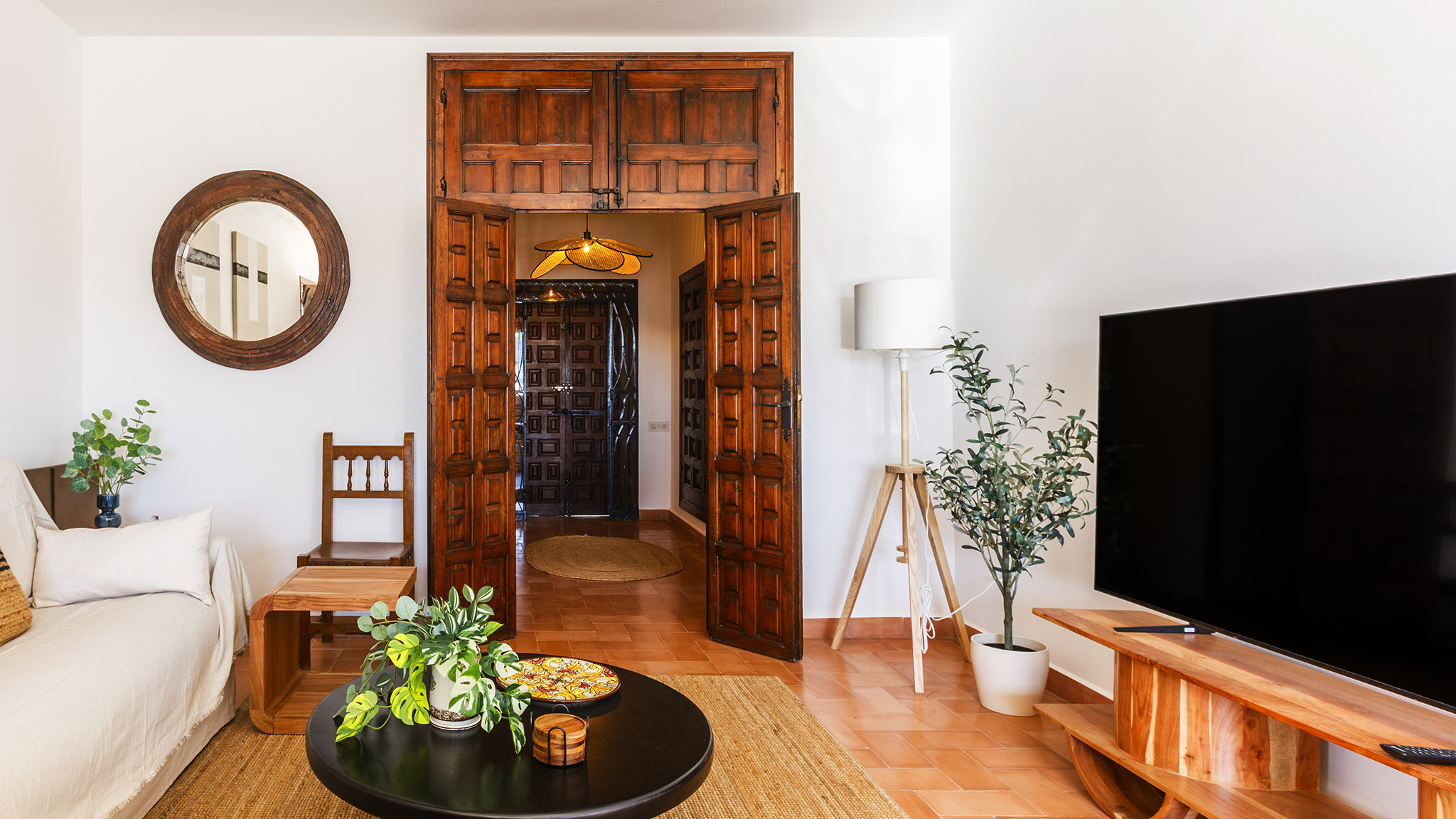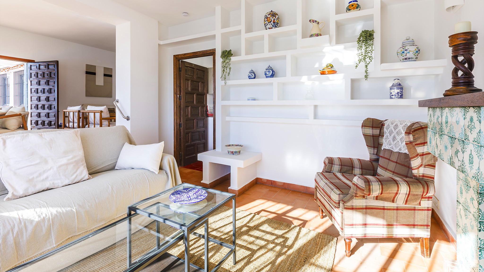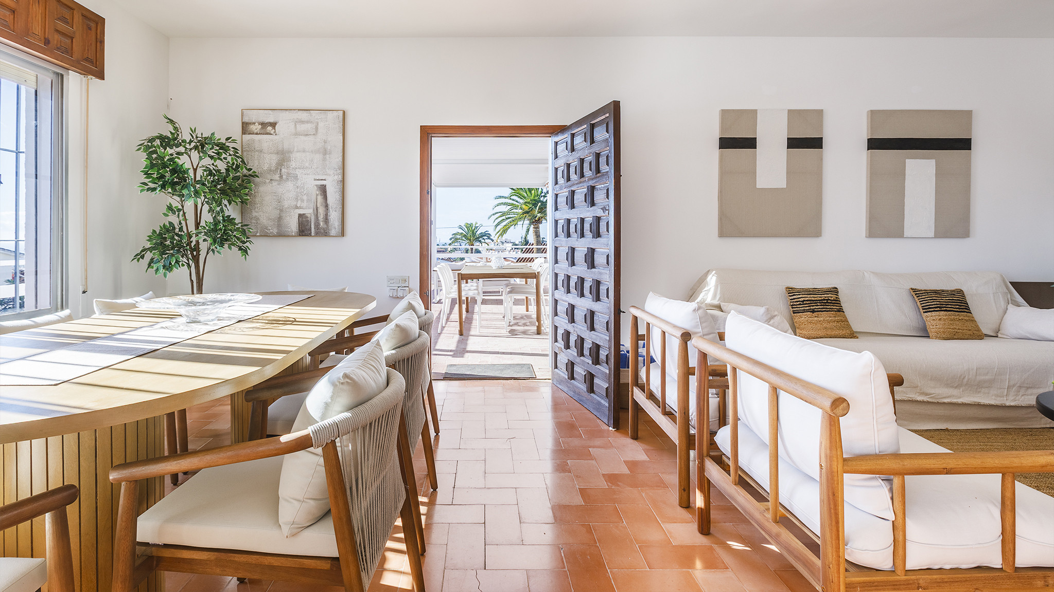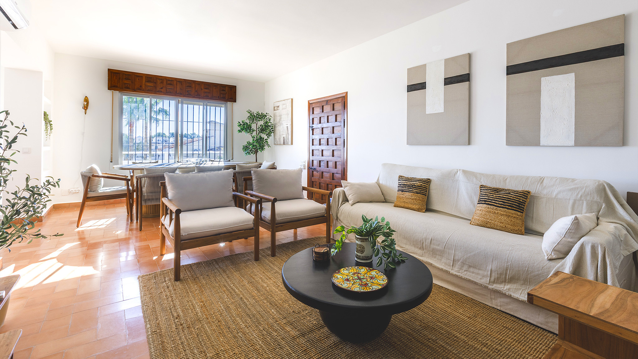 Im Inneren ist die Villa komfortabel eingerichtet. Das Wohnzimmer verfügt über bequeme Sofas und Sessel, einen Essbereich und einen Smart-TV mit internationalen Kanälen. Die unabhängige, voll ausgestattete Küche bietet alles, was für einen entspannten Urlaub benötigt wird.