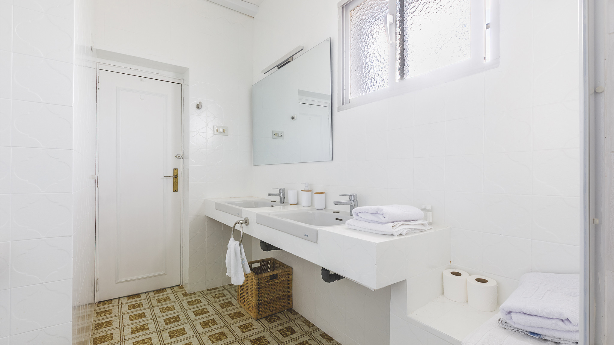 Eine breite Treppe führt in den ersten Stock, wo Sie 3 hübsche, romantische Schlafzimmer (eines mit zwei Einzelbetten, zwei mit Doppelbett) finden. Die Doppelbettzimmer haben ihre eigenen Badezimmer (Wanne mit Duschkopf, Waschbecken, Bidet und WC), und für das Einzelbettzimmer gibt es ein separates Badezimmer mit Badewanne, Waschbecken und WC.