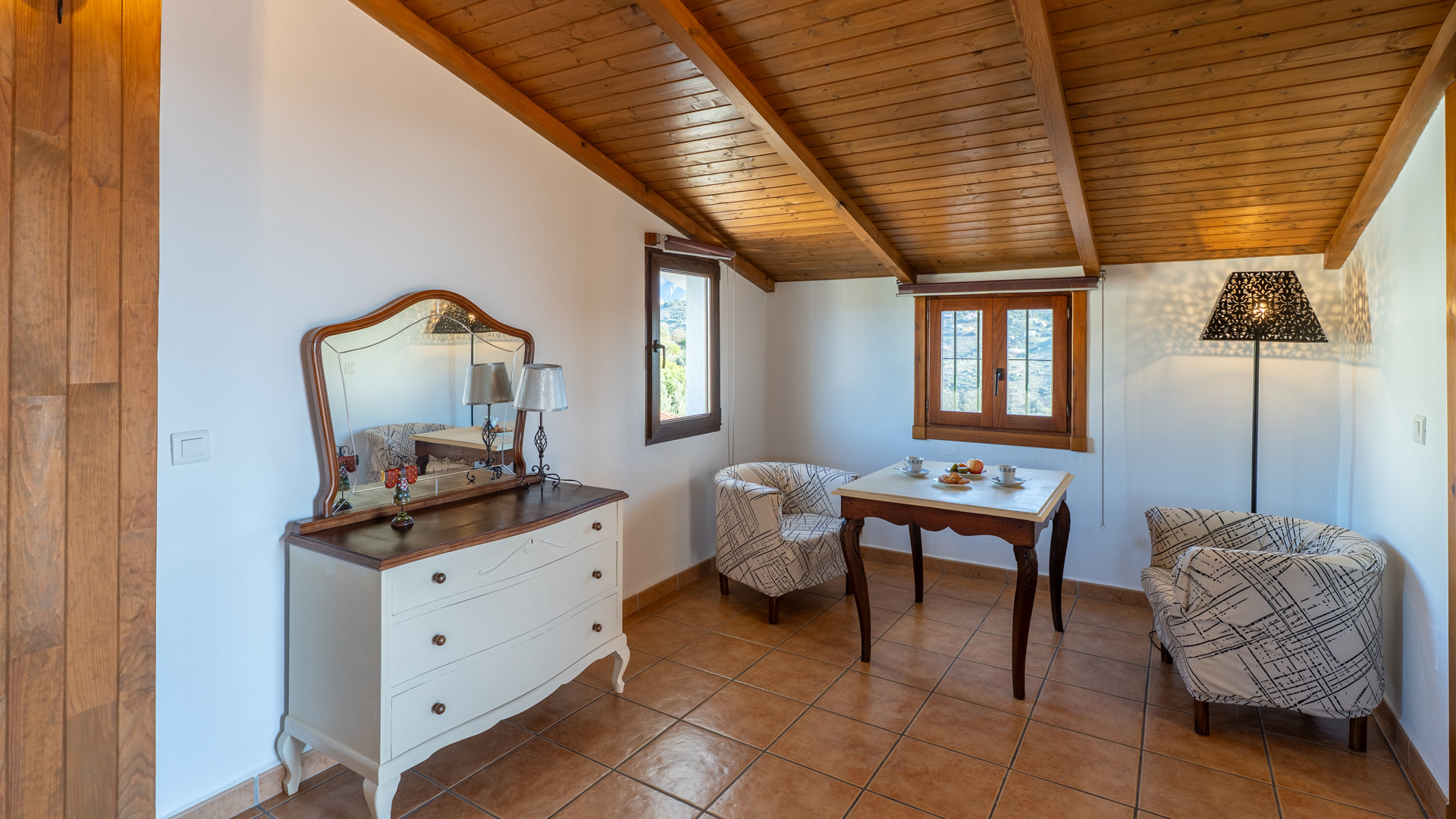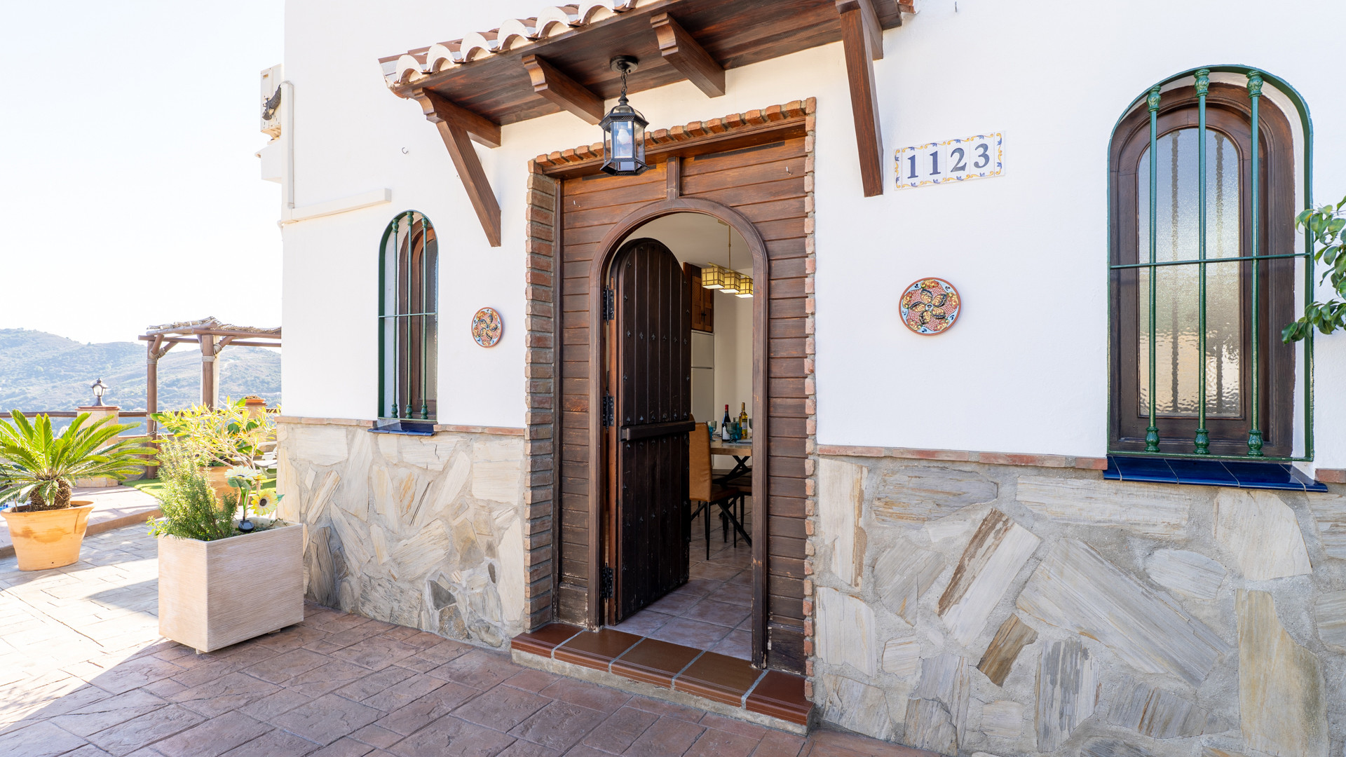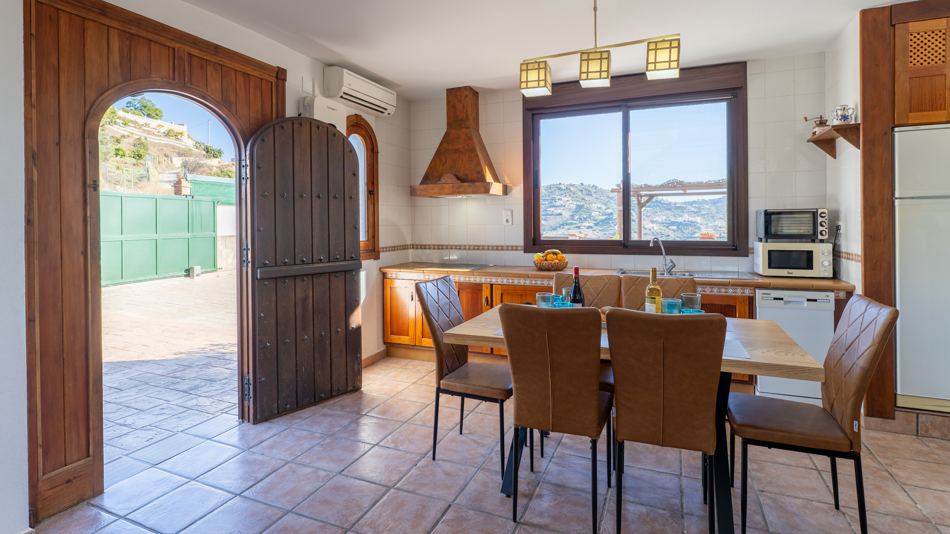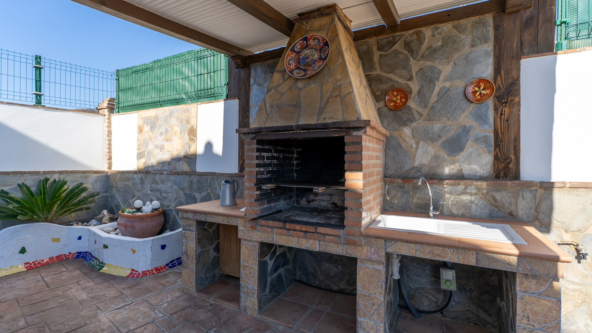 Dieses Ferienhaus hat eine Hanglage und ist 1,5 km von Torrox und 6 km von den Stränden und dem pulsierenden Leben der Torrox-Küste entfernt. Man erreicht es über einen ansteigenden betonierten Weg, der auf den letzten 400 Metern in einen Landweg in relativ gutem Zustand übergeht. Die geräumigen Terrassen sind sichtgeschützt und haben einen 8 x 4 Meter großen Swimmingpool. Dieser kann nachts beleuchtet werden, falls Sie unter dem romantischen Sternenhimmel schwimmen möchten. Neben dem Pool gibt es einen Geräteraum mit WC und Waschmaschine. Für Mahlzeiten an der frischen Luft empfehlen wir die überdachte Veranda, die mit einem hübschen Holztisch ausgestattet ist. Ein gemauerter Grill, Terrassenmöbel und Sonnenbetten sind vorhanden. Ein Pingpong-Tisch erweitert die Freizeitgestaltungsmöglichkeiten. Sollten Sie diesen hübschen Ort wirklich einmal verlassen wollen, dann machen Sie einen Tagesausflug nach Granada und lassen Sie den Zauber der Alhambra auf sich wirken. Das Haus hat einen eigenen Parkplatz.