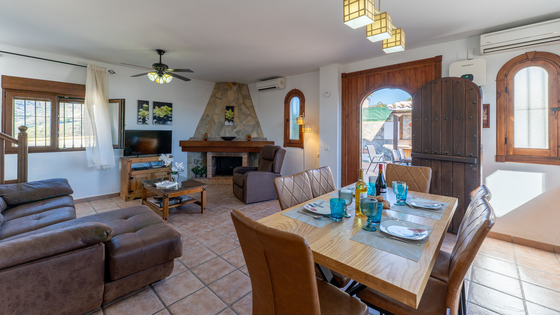 - Es gibt Klimaanlage im Wohnzimmer, in der Küche und im Schlafzimmer im ersten Stock verfügbar (kostenlos). Die anderen 2 Schlafzimmer haben einen großen Deckenventilator.
